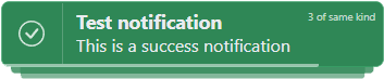 | backgroundColor | string | undefined | no | HEX or RGB color code which will apply to the notification. Calculates stack shades, border and text color based off this |