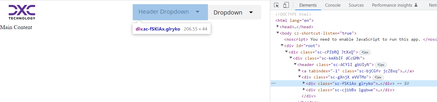 First dropdown using DxcApplicationLayout.Header.Dropdown has 44px of height. Meanwhile, a normal dropdown (the second one), it has 40px of height.