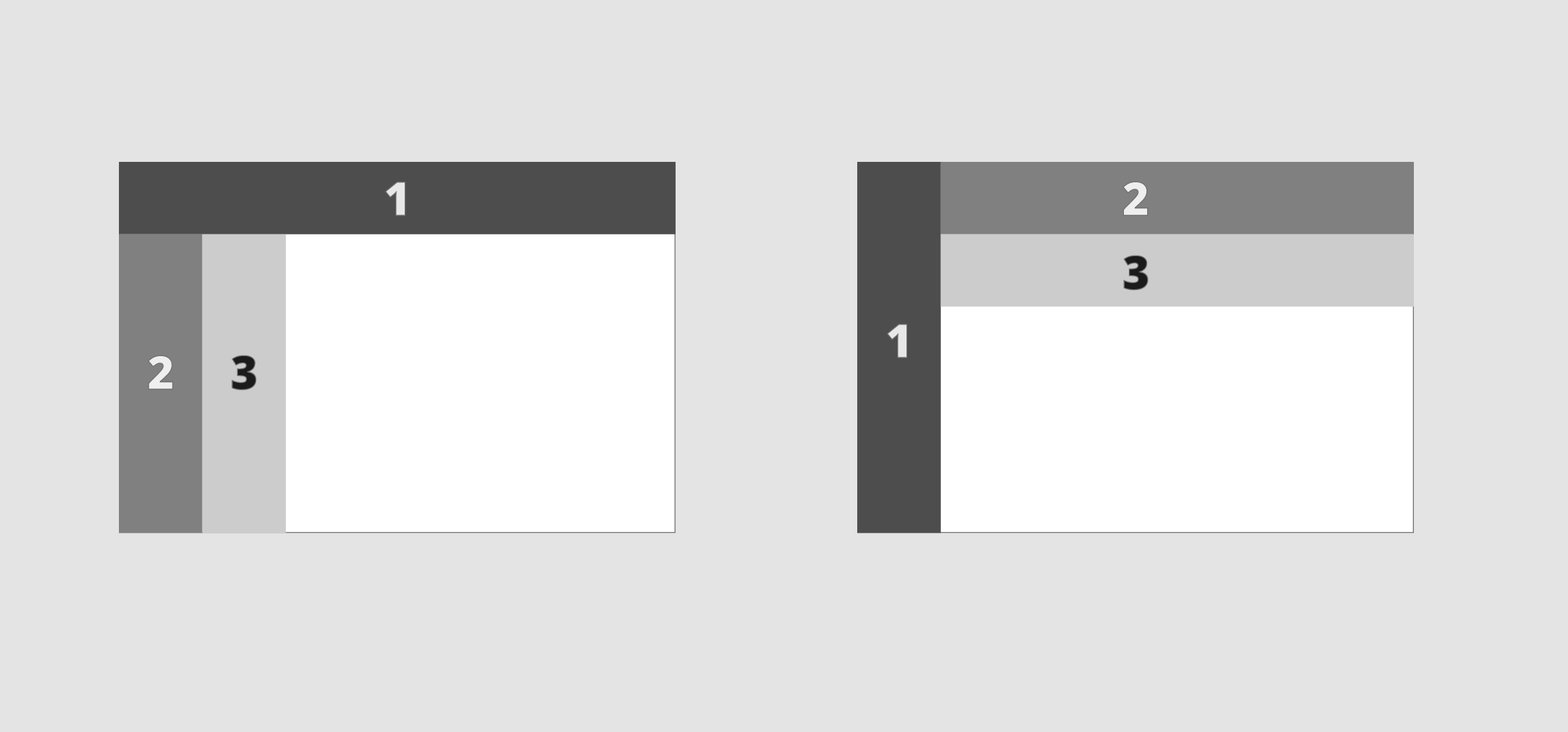- Top navigation: Use it in applications with few navigation items and without a hierarchical navigation model.