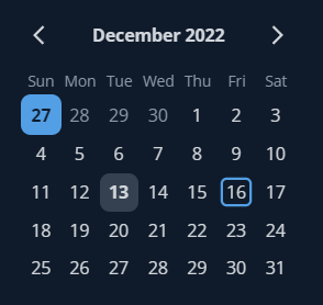 - Why does the outline from the previous/next month's arrows have an offset of -2px? It doesn't make sense since it has enough space to appear. The same question goes for the year dropdown button.