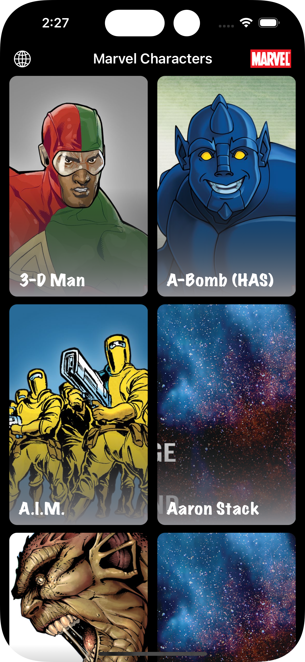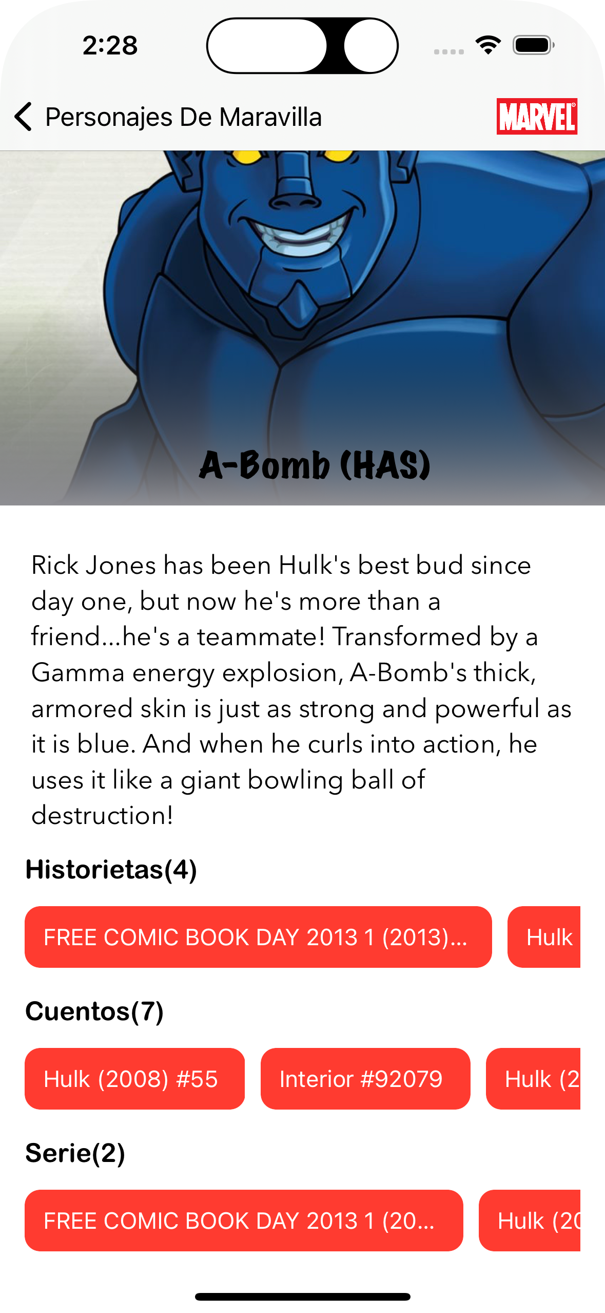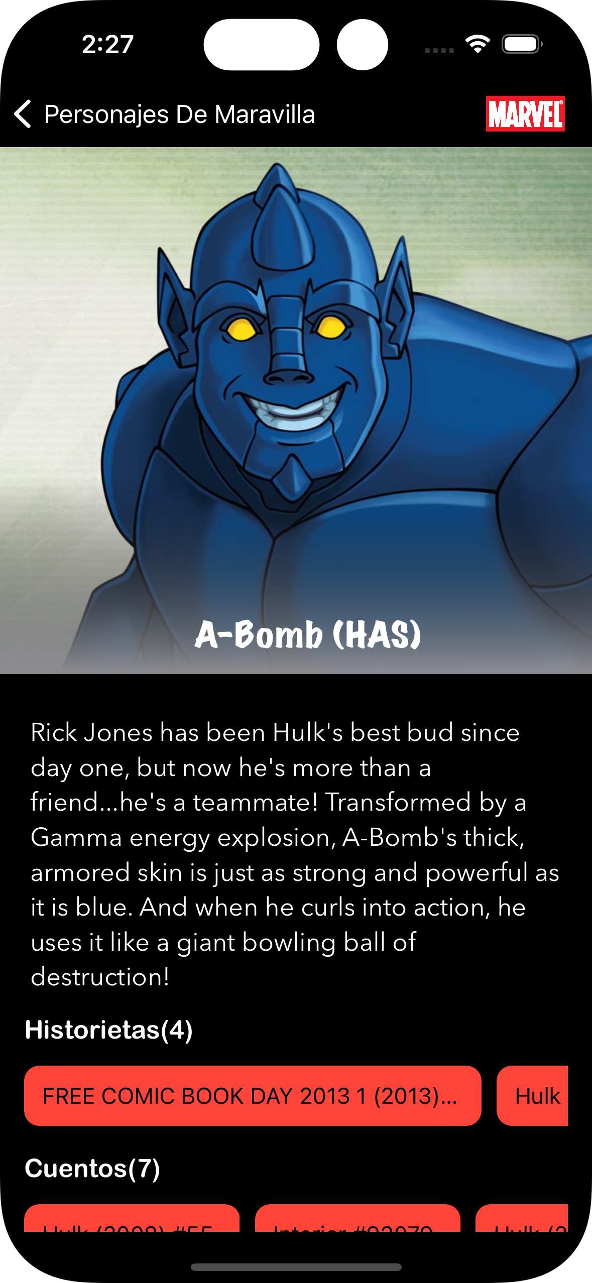 Super-Marvel is an iOS app that uses the Marvel API to display a list of Marvel characters and their details. You can browse through hundreds of heroes and villains from the Marvel universe, see their comics, and learn more about their powers and abilities.