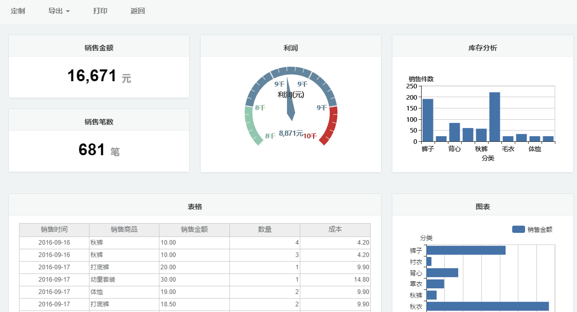 2.设计报表/仪表盘使用简单,通过拖放等方式构建分析界面。