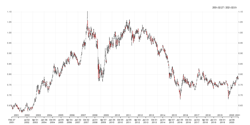 > cadusd <- td::time_series(sym="CAD/USD", interval="1week", outputsize=52.25*20, as="xts")