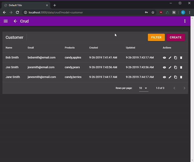 - You can test your own custom components alongside the included CRUD app in dev mode