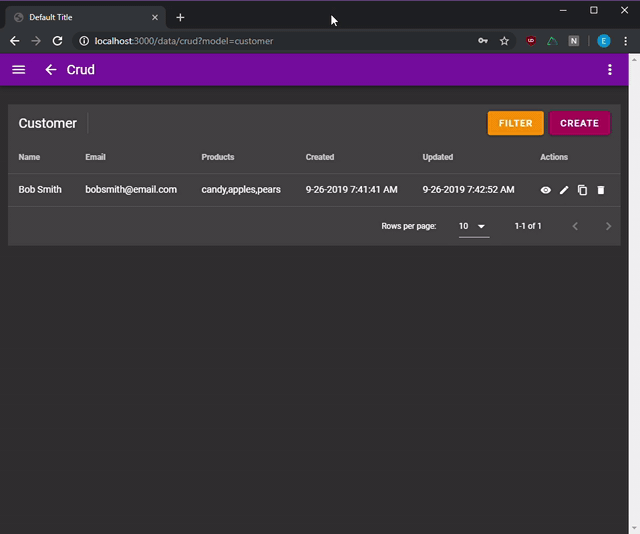 - You can test your own custom components alongside the included CRUD app in dev mode