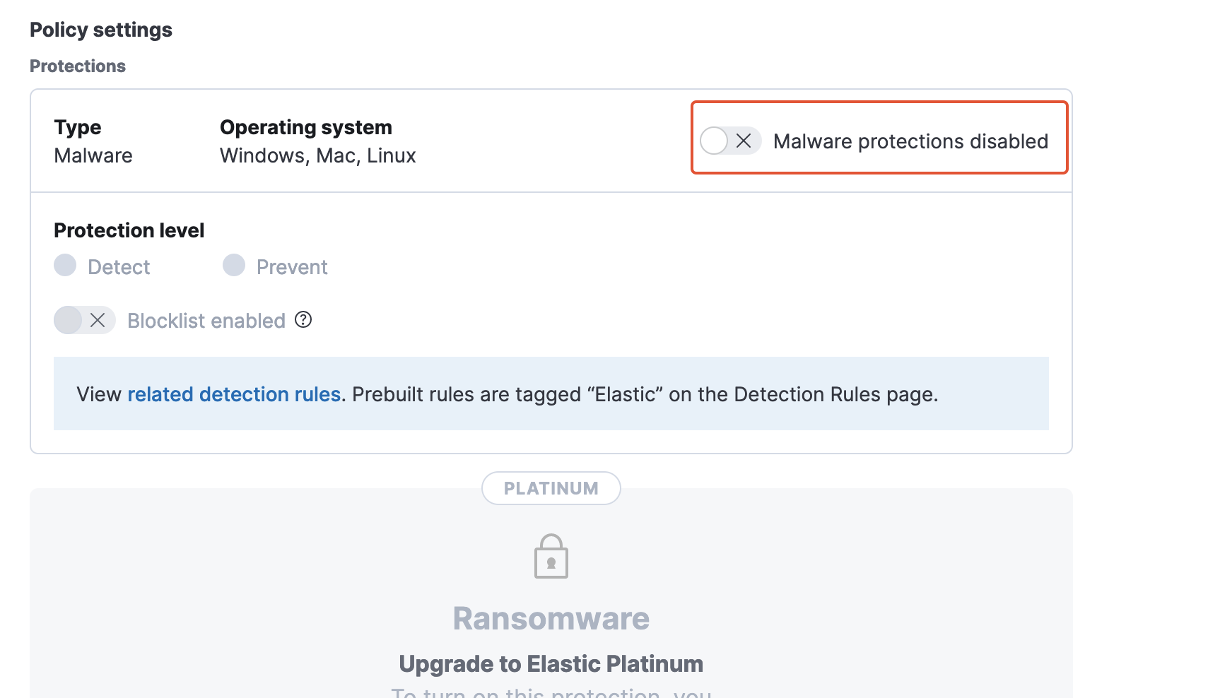 Malware protection disabled and policy saved + applied