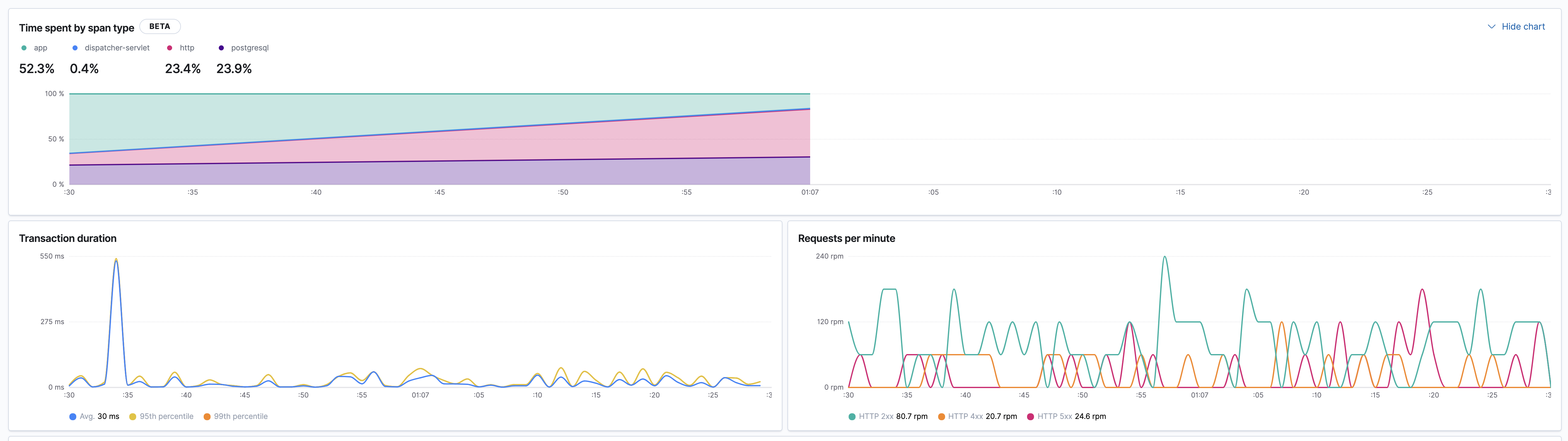 When the chart is zoomed in far enough that we cannot show any data (<30s) because our collection interval is larger, we don't show anything which is not helpful to the user either.