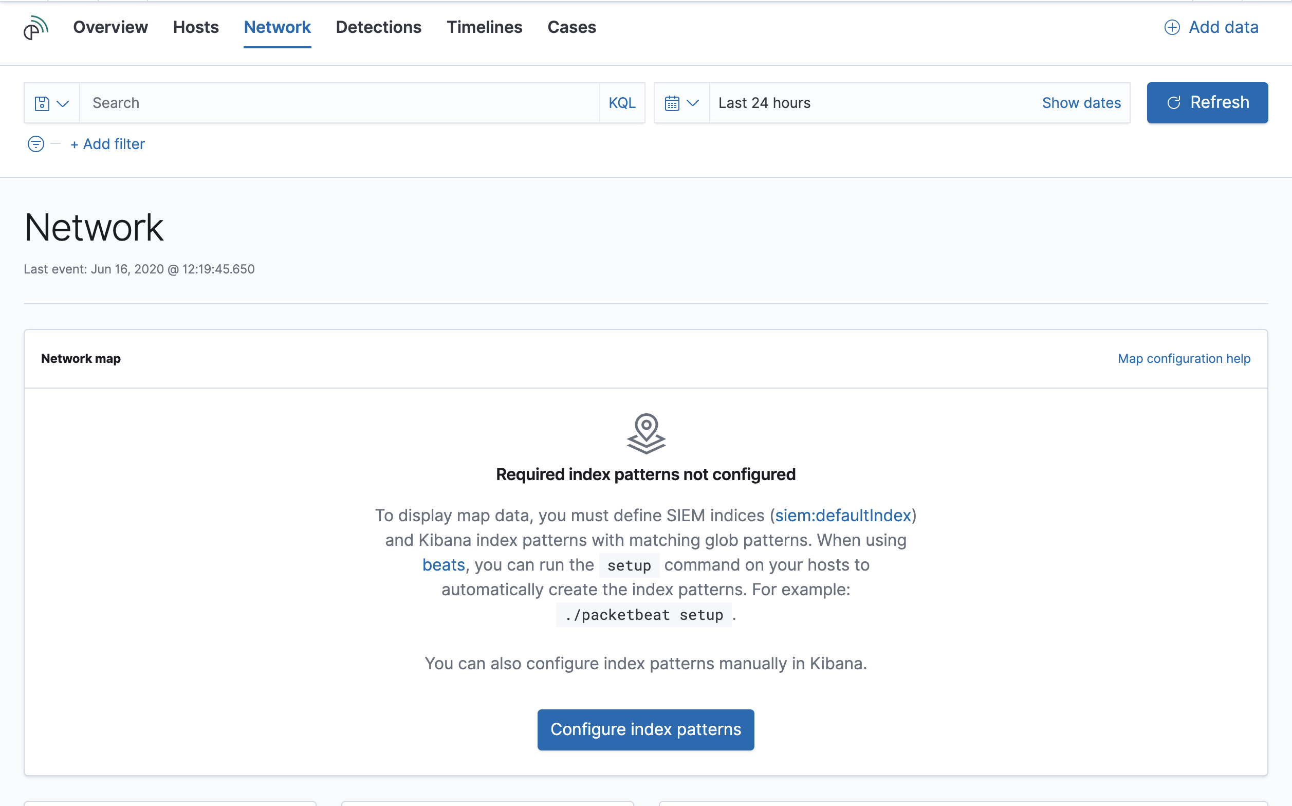 When Space privileges are set to None for the Maps app, the Network Map will display its default empty view as if it still needs index patterns instead of messaging the user to contact their Kibana Administrator to enable support for Maps.