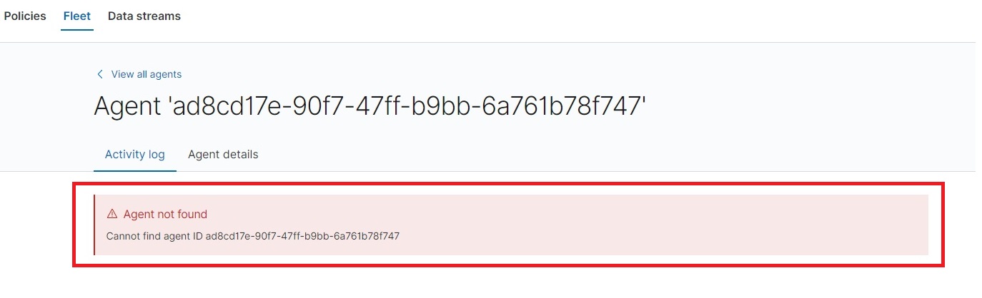 Error 'Agent not found' is displayed for a second on clicking Host under Fleet tab and on refreshing the Activity log page