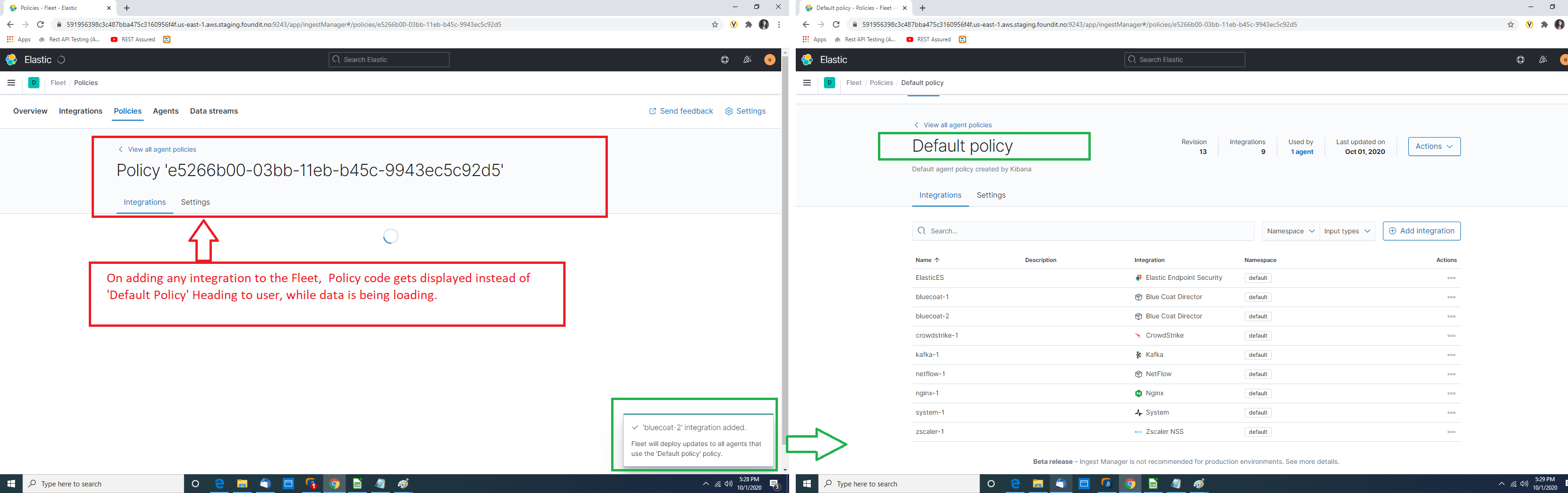 On adding any integration to the Fleet, 'Policy id' is displayed instead of Policy name, while data is being loaded.