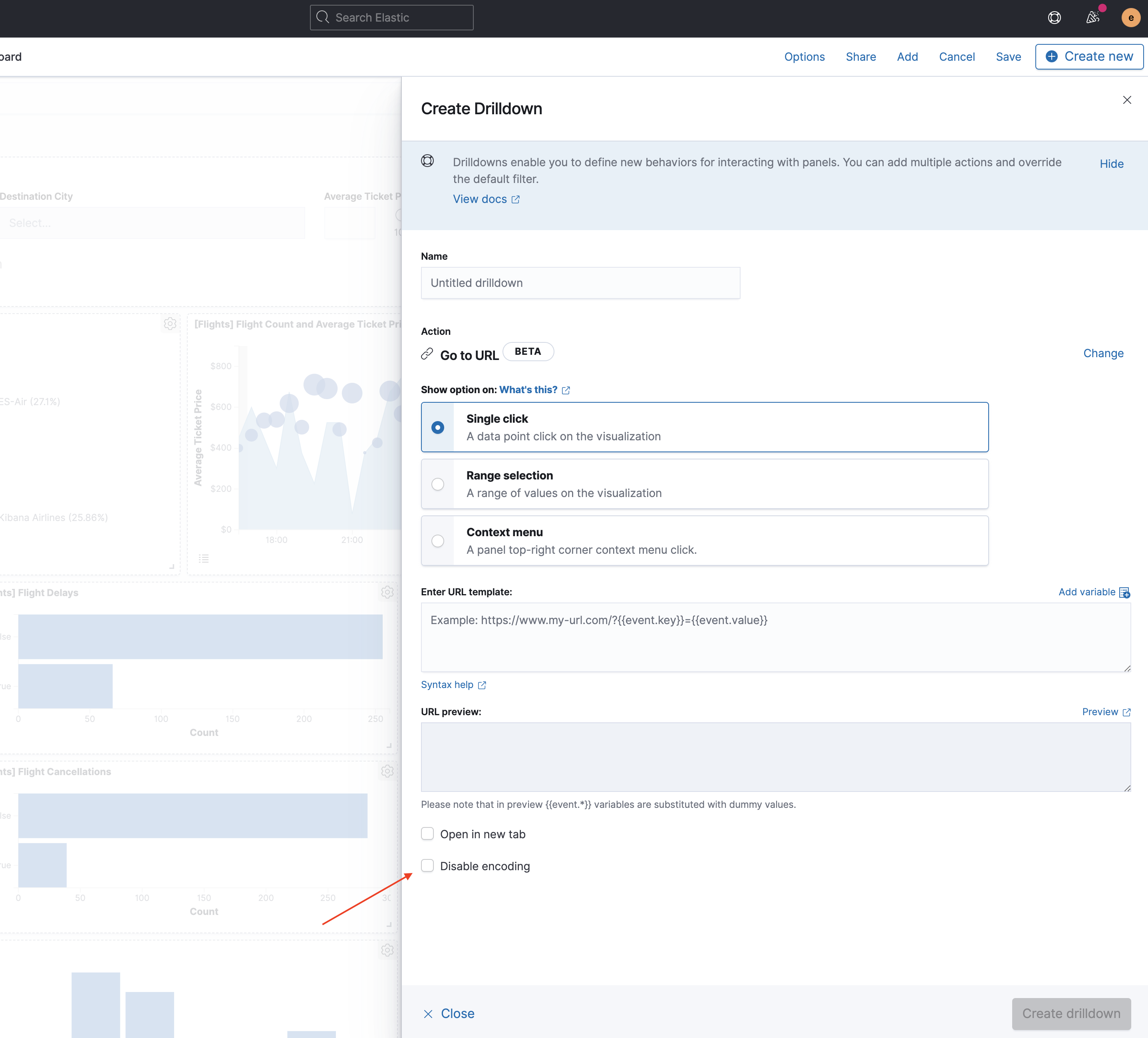 Adds ability to not encode URL in URL Drilldown.
