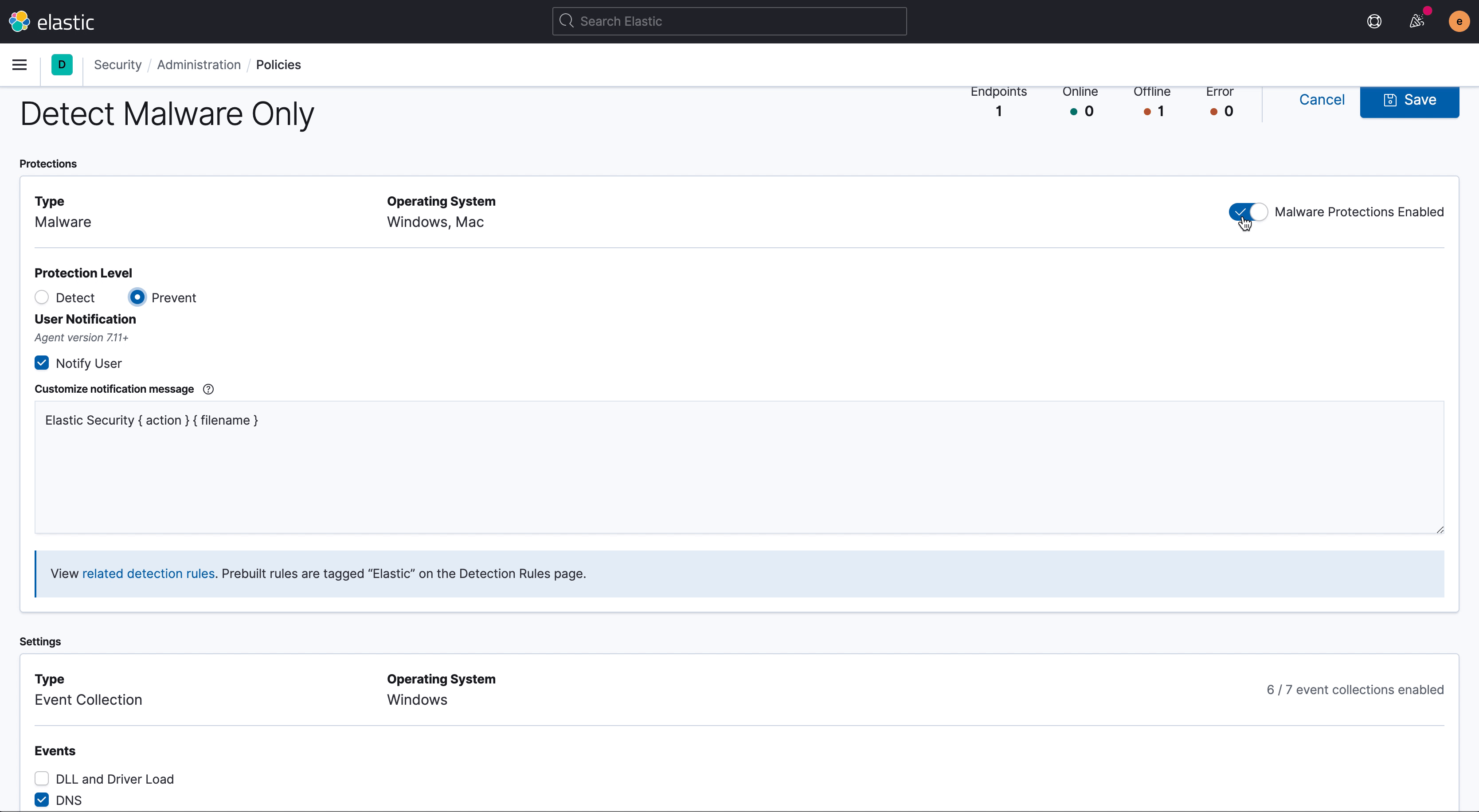 [Security Solution][Endpoint][Admin] Disables malware checkbox when switch is off and can now save in detect mode #86402