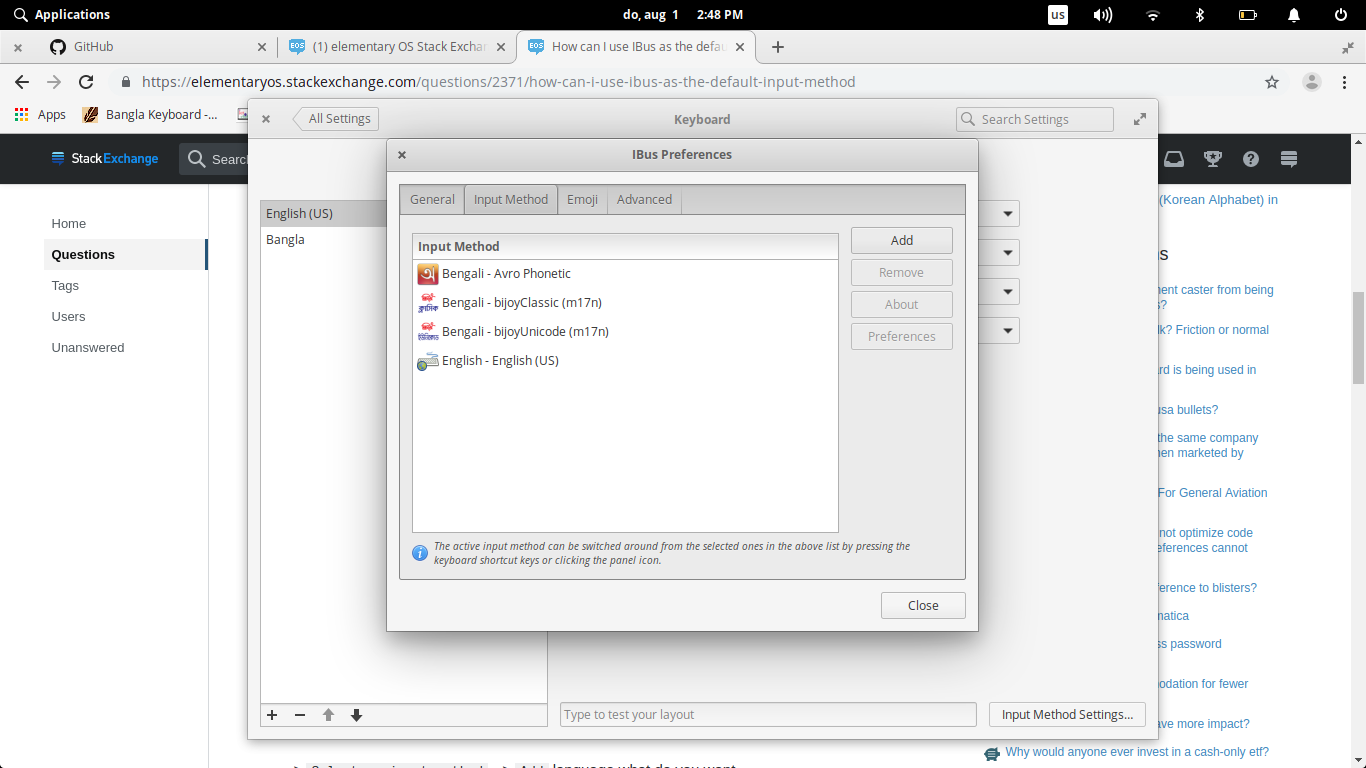 The "Select an input method" button is missing in ibus preferences>input method in my device