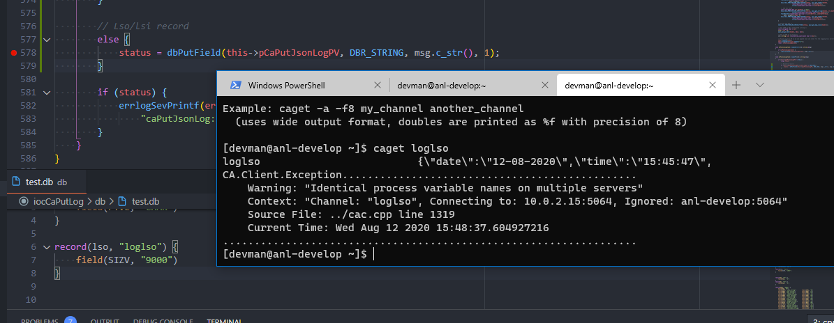 + status = dbPutField(this->pCaPutJsonLogPV, DBR_STRING, msg.c_str(), 1);Even though it's using |