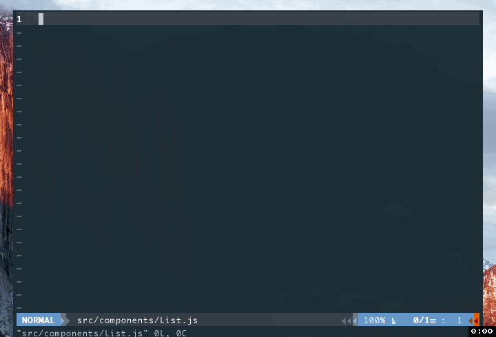 A Vim snippet library for React in ES6. You may also want to check out vim-es2015-snippets.