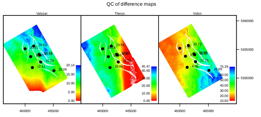 - Difference maps between input seismic interpreted surfaces and surfaces used as input to the geological grid