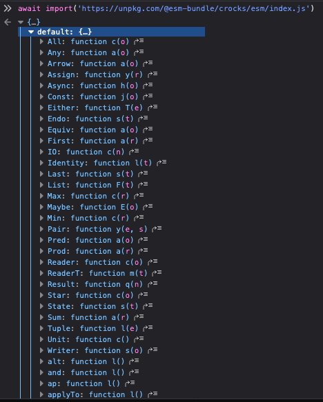 I think I gave you rights to create repositories in esm-bundle, so you should be able to transfer this repo over? Regarding not providing a single bundle for the crocks library - that is different than the other esm-bundles, but I'm okay with it since people use the deeper imports. Does every single file have to be preserved? In that case it might make sense to just run it through babel instead of rollup, since rollup is specifically for concatenation / bundling. Alternatively, there is a CDN that automatically converts any npm package to ESM and System.register format. It just doesn't convert them into bundles. Check it out at https://cdn.jspm.io/npm:crocks@0.12.4/index.dew.js. It's run by Guy Bedford - the downsides are that you can't host it yourself (it's closed source), deploys to it are managed by Guy, and the CDN never does any concatenation / bundling. However, it's a really useful tool and I'd recommend checking it out. If that alternative hasn't already won you over - I'd suggest switching over to babel and using something like https://github.com/prateekbh/babel-esm-plugin to creating the files. The npm script would be this: |