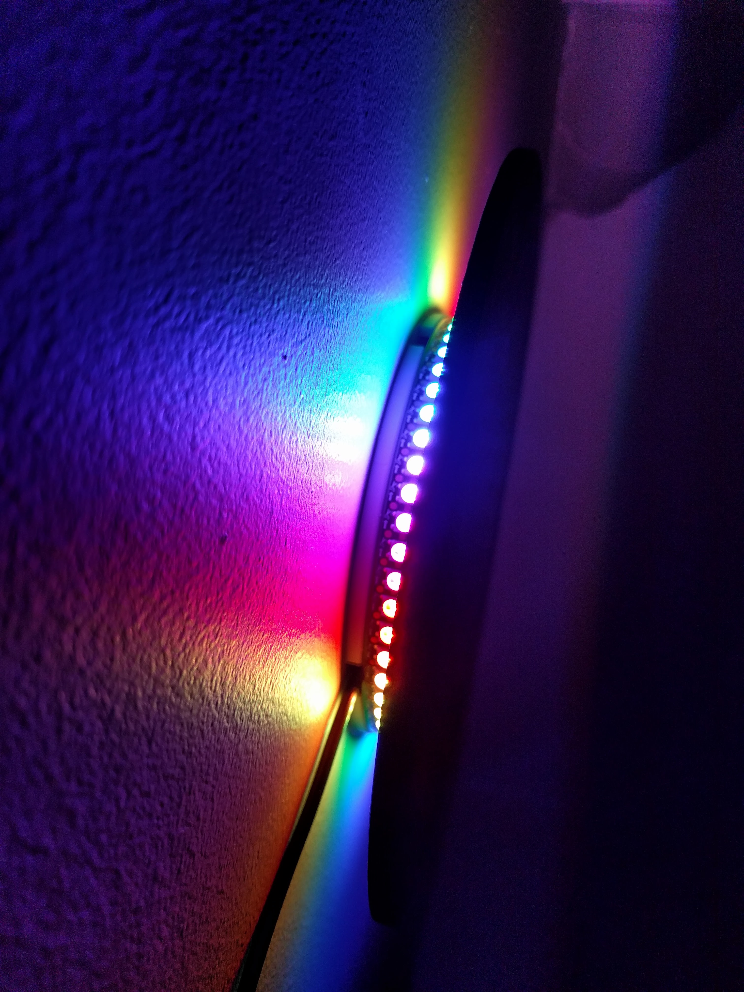 Small (5.25" / 133.35mm) clock and art display built with 60 RGB LEDs, controlled with an ESP8266 using the FastLED library.
