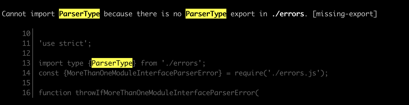 Hi @Marcoo09! export type ParserTypeand then you have to use it with the import type {ParserType} from In this way, it should work! |