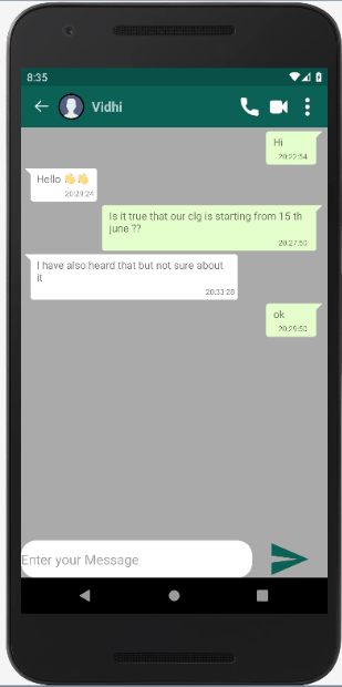- Your private chats will be encrypted on the sender side with the help of AES algorithm and this key will be encrypted with RSA algorithm.