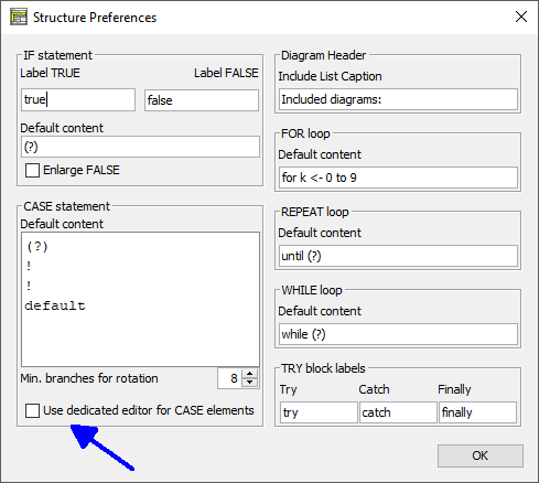 I think, a respective checkbox could be added to the Structure Preferences (there is space enough at the bottom of the CASE area):