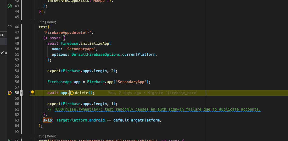 Another difference to the Flutter Drivers tests is that I'm using the firebase_options.dart file from the lib instead of copying it again in the integration_test folder (like it has been done in the test_driver folder).