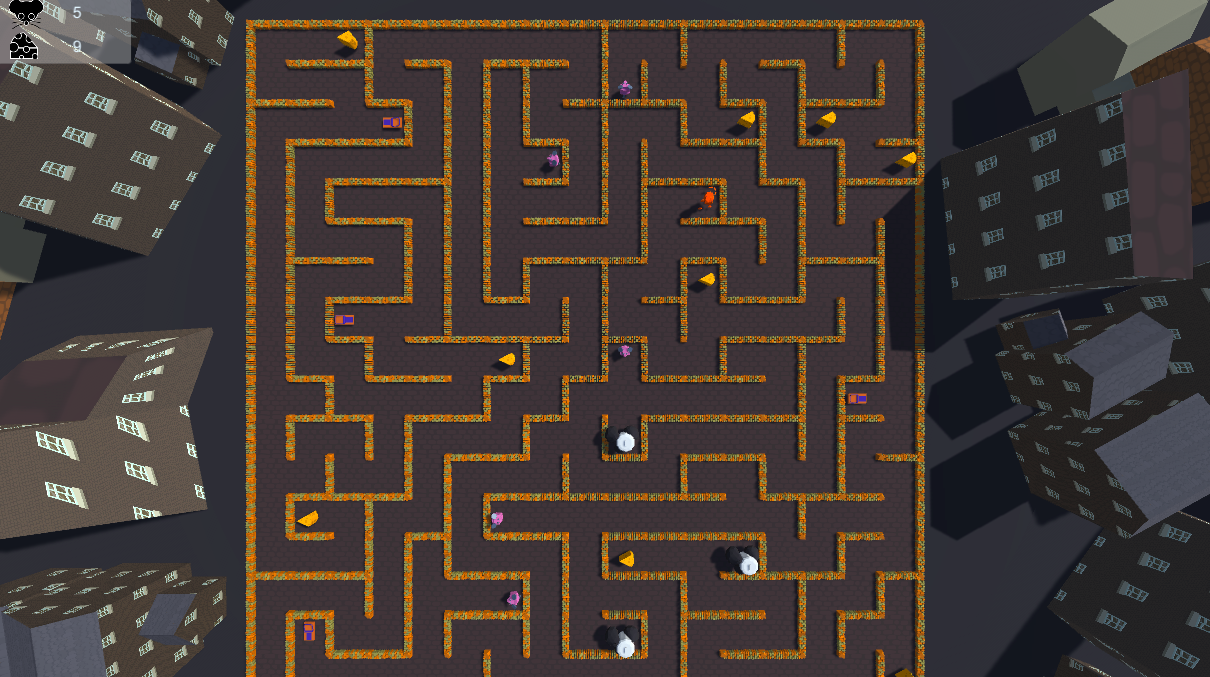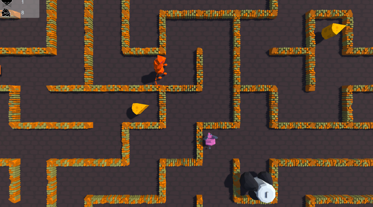 Whisker is a 2 player asymmetric multiplayer where one player controls a horde of Rats and the other the single Cat through the randomly generated maze.