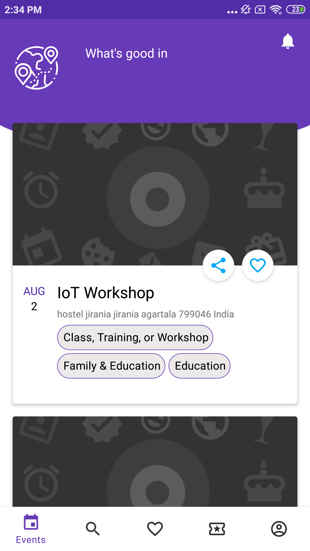 **Describe the bug** Search location fragment is taking empty location which is not clickable in events fragment <p align="center"> <img src="https://user-images.githubusercontent.com/27783786/61524069-3d4cad00-aa33-11e9-9789-b870e932699a.png" height = "480" width="270"> </p> **Would you like to work on the issue?** <!-- Please let us know if you can work on it or the issue should be assigned to someone else. --> - [x] Yes - [ ] No - Other: