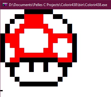 Colorir438 is a tiny editor for its own simple image format made to draw and visualize small images/pixel arts on the Command Prompt by mimicking pixels using two ASCII 219 characters together (██).