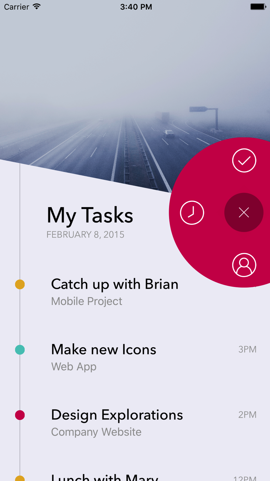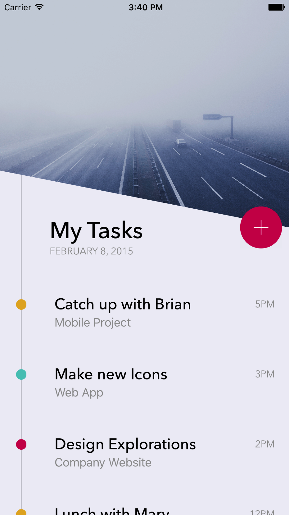 Timeline Inspired by Filter Menu - Dribble Attributions Icons - Simplicicons by Austin Condiff Header Image - Black Car on Hi-way With Fog by Markus Spiske