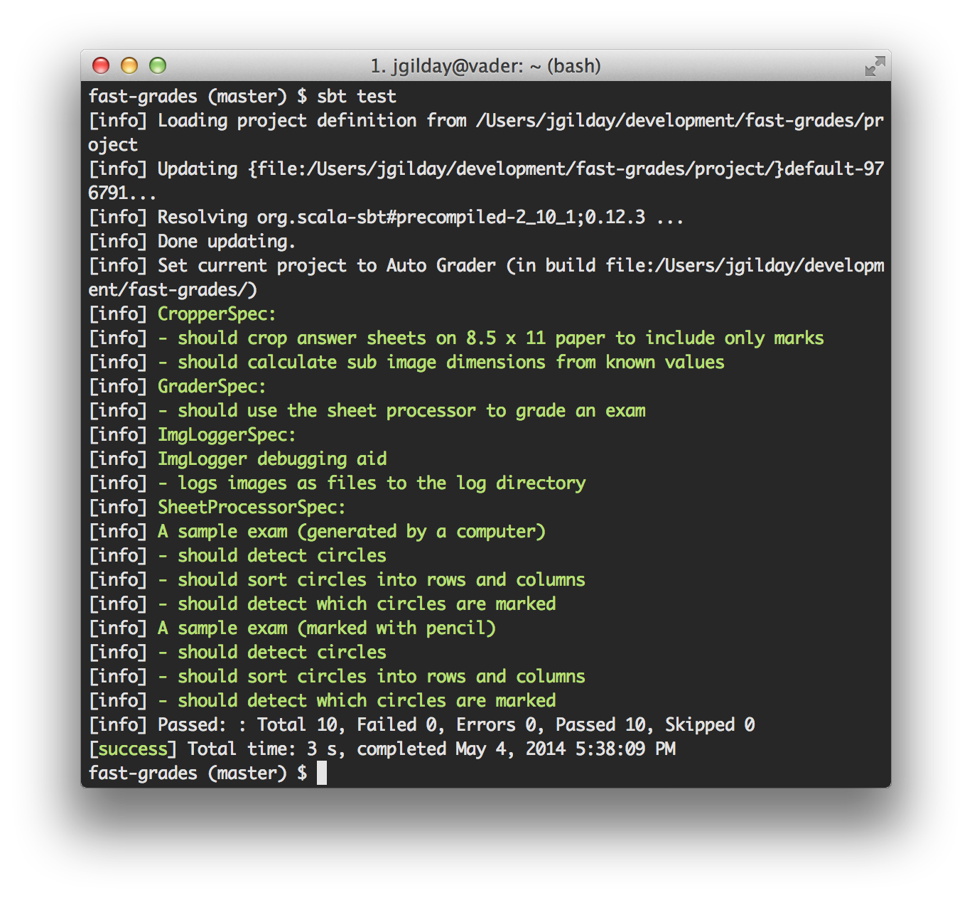 Continuous Integration See Fast Grades on Travis CI. With every commit to the master branch, a Github post-commit hook tells Travis CI to build the project and run the automated tests.