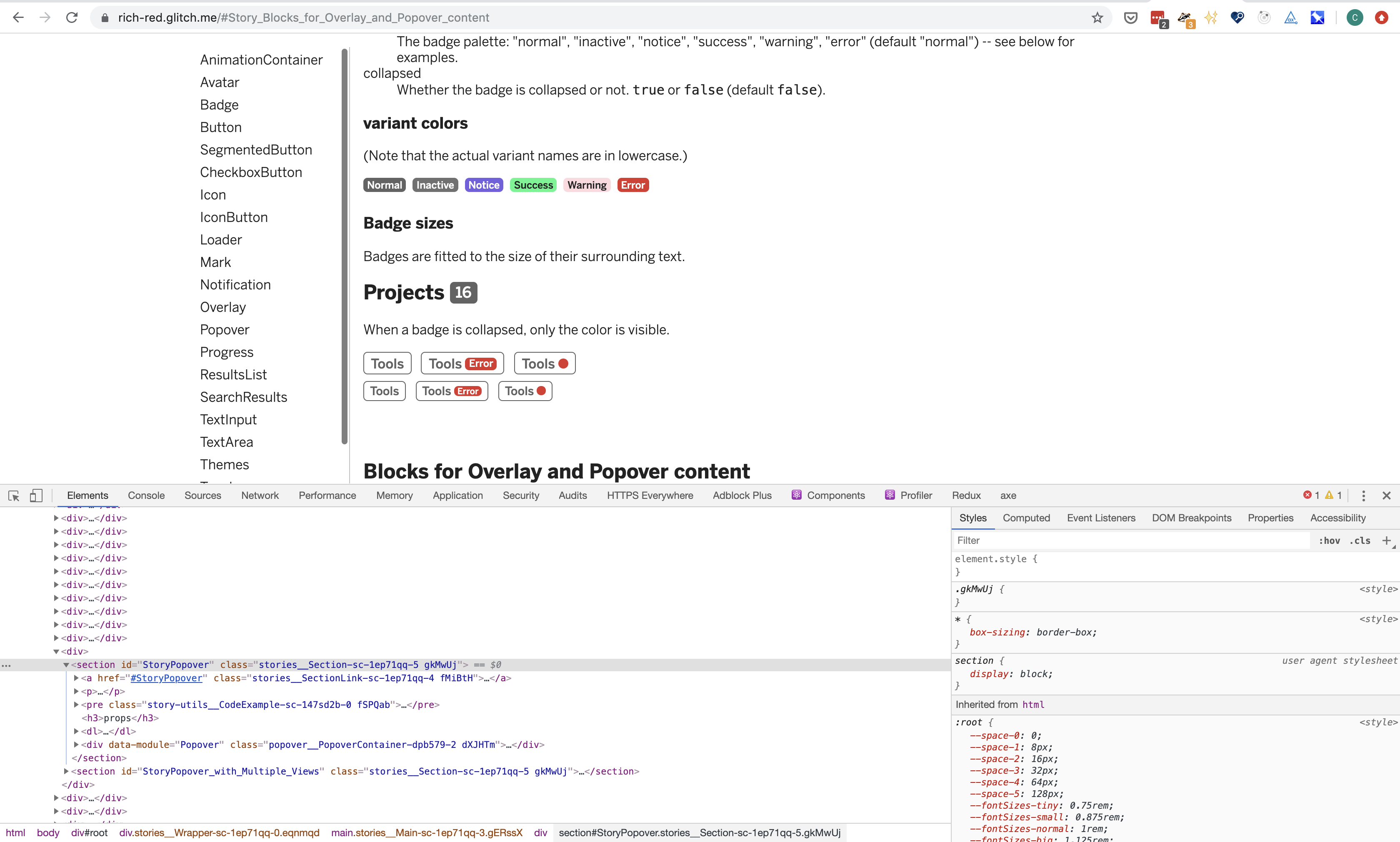 Rich-red: make navigation usable when dev tools is open, and add links to popover/overlay blocks #65