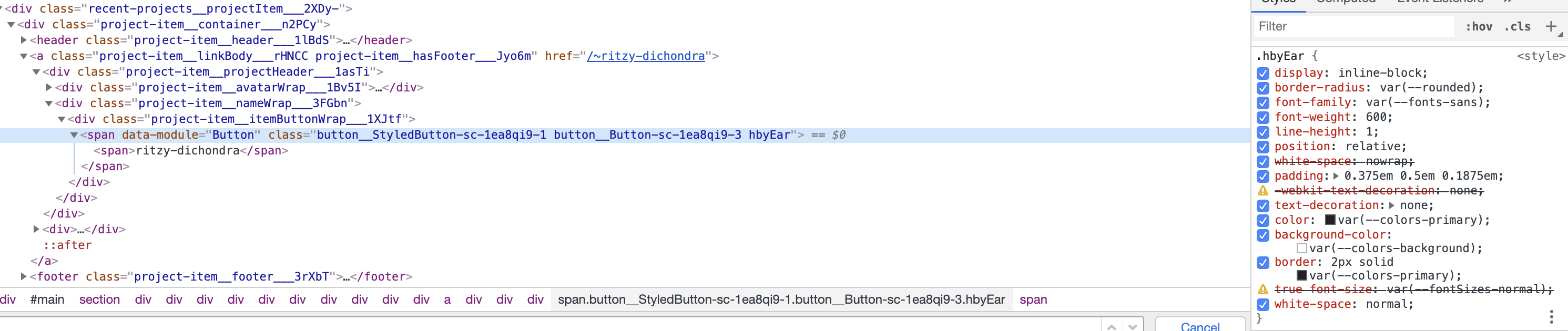 Ritzy-dichondra: fix extraneous "true" in CSS for Button #76