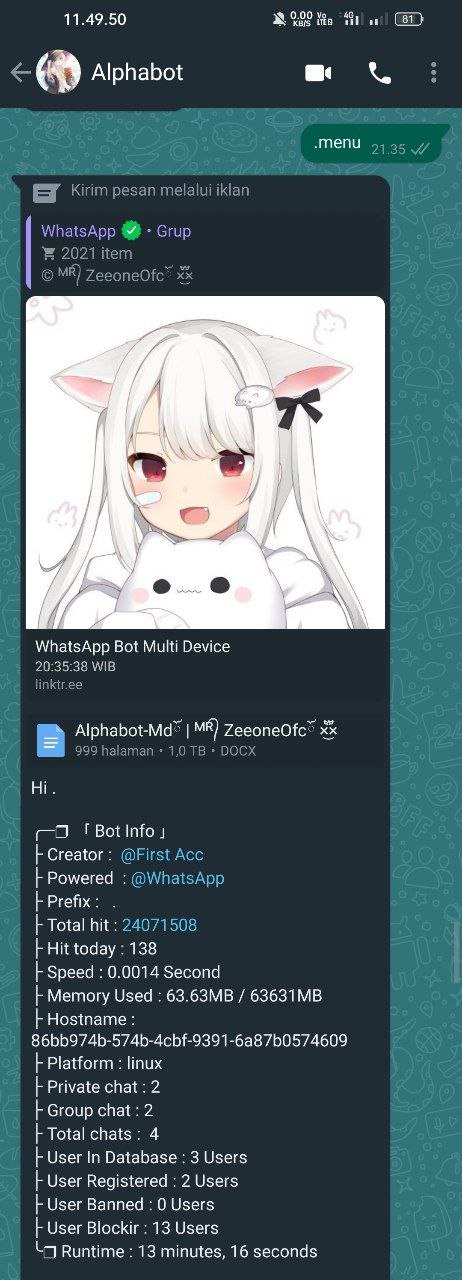 Alpahbot-Md adalah bot yang memakai base dari Hisoka-Morou. Alphabot-Md is a bot whatsapp using a Baileys library.