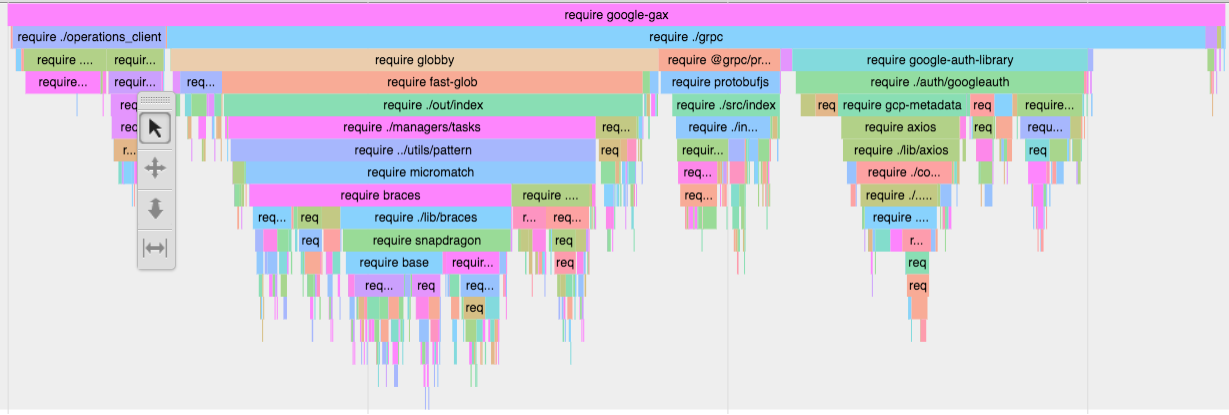 I ran some performance #'s on load time using require-so-slow. The globby package is responsible for 40% of the gax-nodejs total load time: