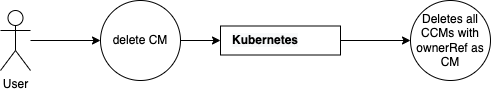 When a user deletes a CM, Kubernetes automatically deletes all the CCMs referencing the CM based on the metadata.ownerReferences in the CCMs.