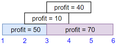 Time range [1-3]+[3-6] , we get profit of 120 = 50 + 70.