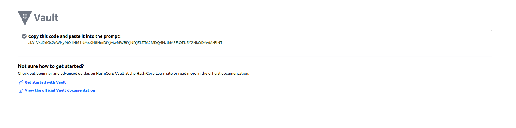 <mount>/oidc/manual(e.g.https://vault.server.company:8200/v1/oidc/oidc/manaul). Theoidc/manualhandler receives 2 fields,codeandstate, which are concatenated via a|character, base64 encoded, and presented for the user to copy and paste into the client, which is awaiting input.In manual mode, instead of the client running a local HTTP server listening for the response, the client accepts the code displayed in the step above via