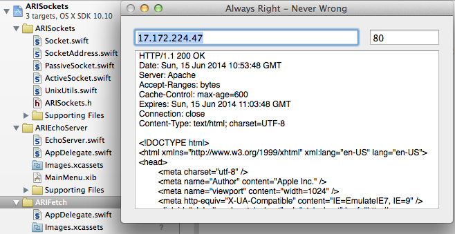 Note for Linux users: This compiles with the 2016-05-31-a snapshot via Swift Package Manager as well as with the Swift 2.2 release using the embedded makefiles. Make sure you install Grand Central Dispatch into your Swift installation. On Linux the included ARIEchoServer/ARIFetch apps do not build, but this one does and is embedded: SwiftyEchoDaemon.