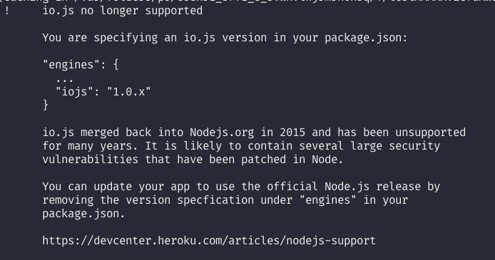 This removes support for apps still deploying with io.js. Most weeks see zero deploys of io.js so the impact here is expected to be very small. Those few apps that do deploy with io.js are opening themselves up to very significant security vulnerabilities and should update.