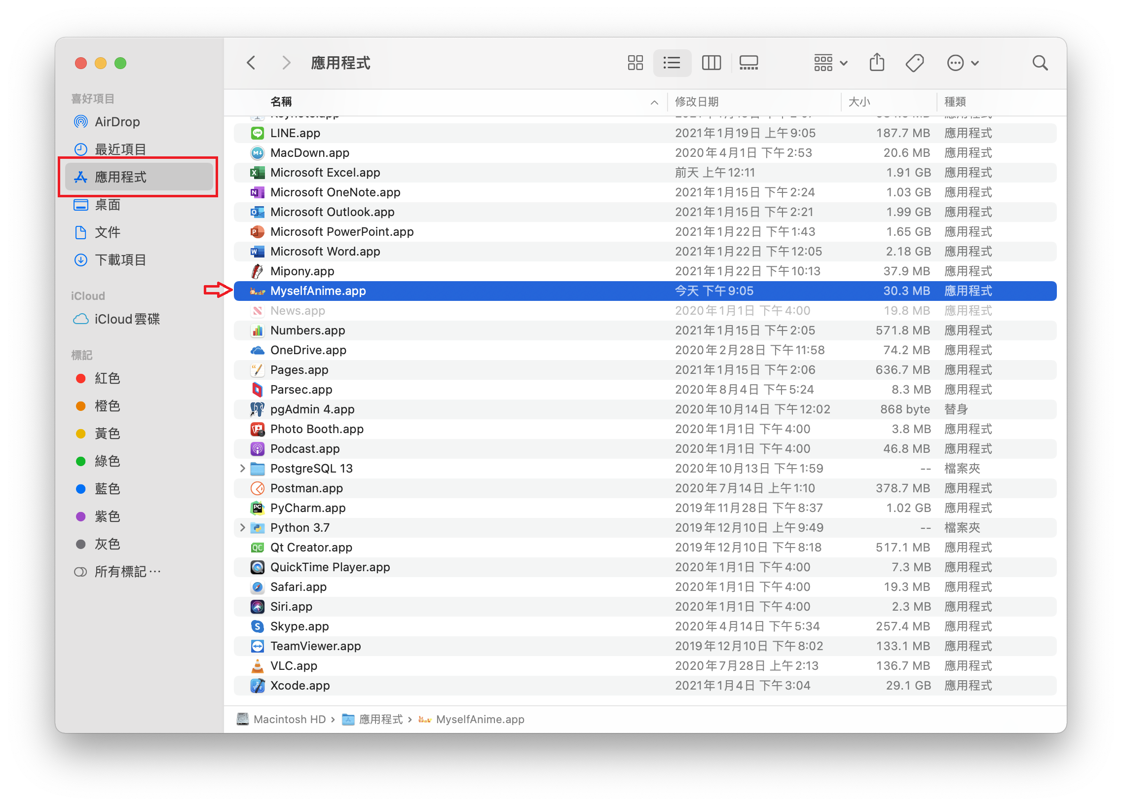 Mac 使用者解壓縮後,請將 MyselfAnime.app 放到應用程式的資料夾。