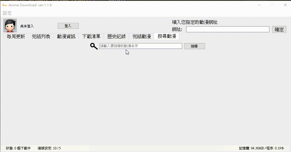 - 如果有動漫正在下載時,在設定介面更新下載速度,更新前正在下載動漫的速度還會是舊的下載速度,請重開程式。