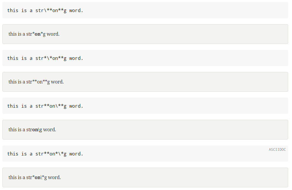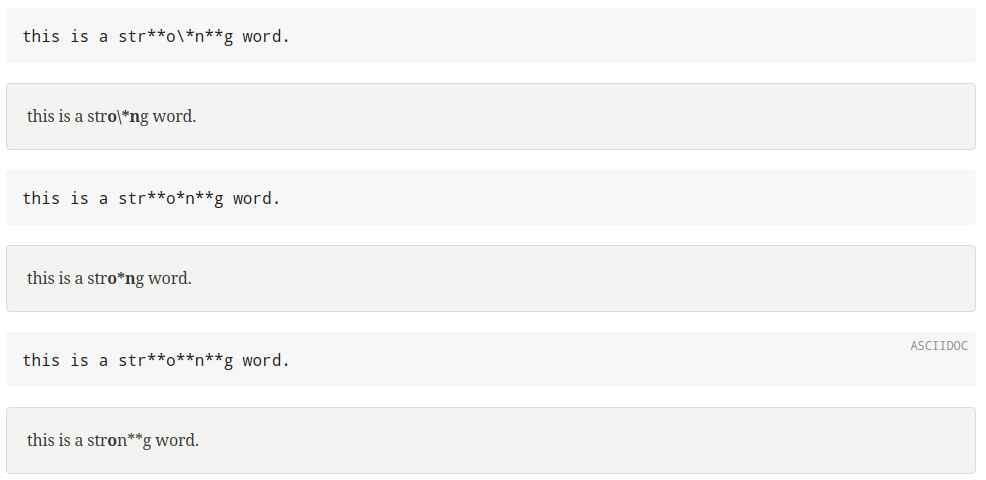 The last example is not correctly interpreted by Asciidoctor 😅