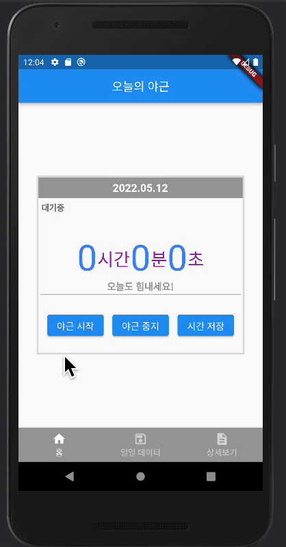 It's an app that records overtime hours with a simple memo⏱ 📀 Shorts Video 📱 About Project 📝 Short description You can record your overtime work every day with short text. The data is saved in a local space. ❗️ Notice and improvements Unable to modify data. Require overtime statistics by dividing units. Need stateControler and CleanCode ⛏️ Skills & Library Dart Flutter Timer Sharedpreferences