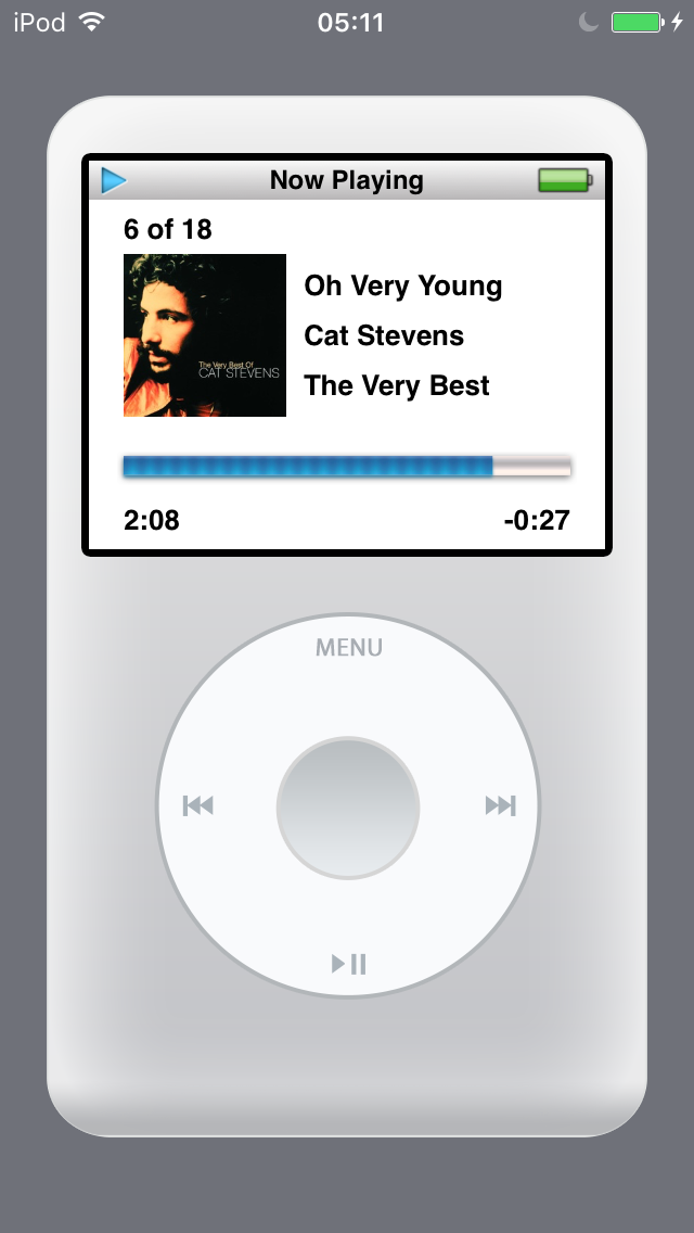 The app uses a very modular structure of VCs and segues, and basically reuses just two VC classes for the whole iPod simulation. The currently implemented menus are: