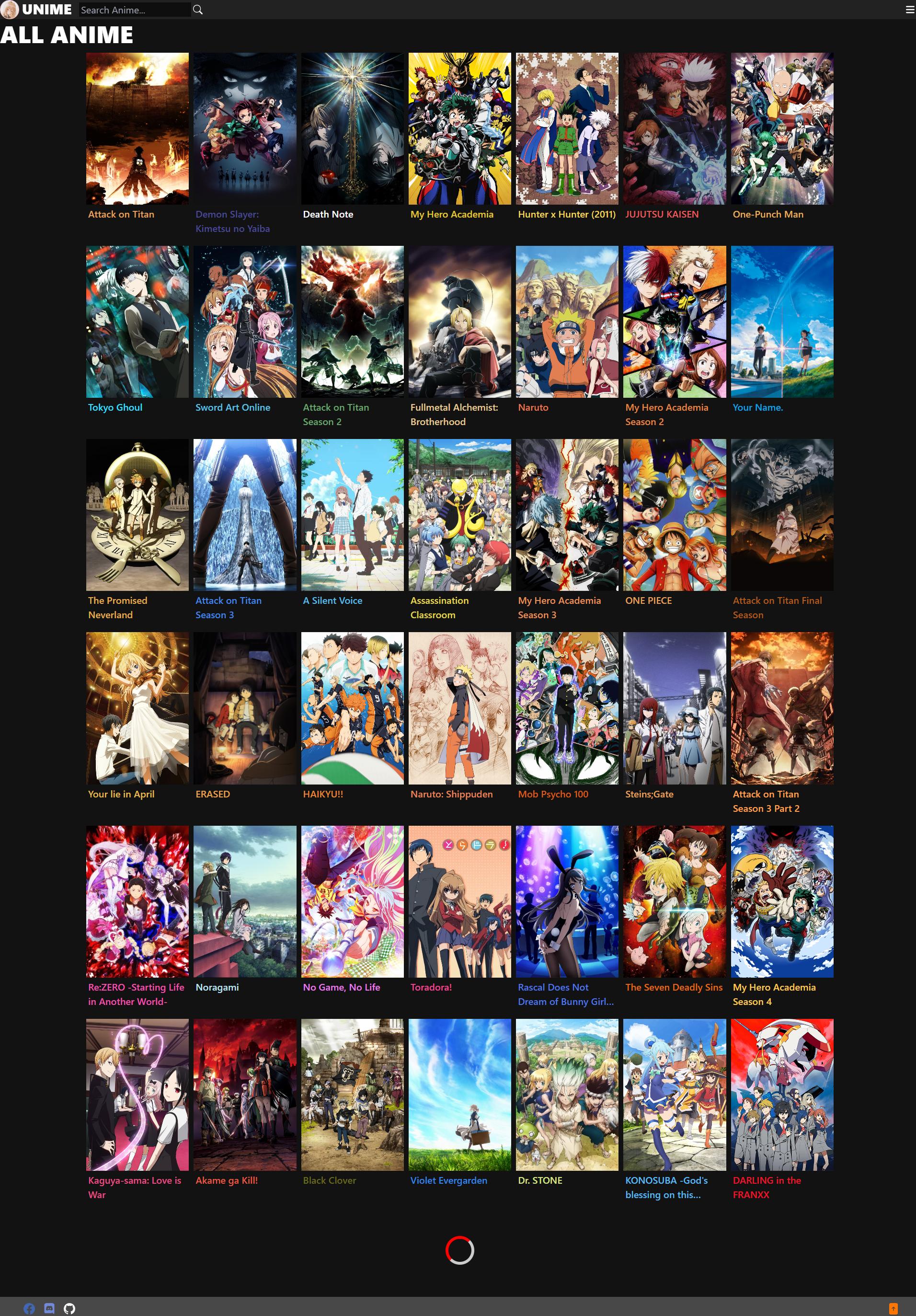 Before I learned HTML/CSS/Javascript to become a web developer, I'd always dreamt of creating an anime page for myself to watch without ads, which drove me to learn the necessary technology and tools required for this first "from scratch" project.- ReactJS