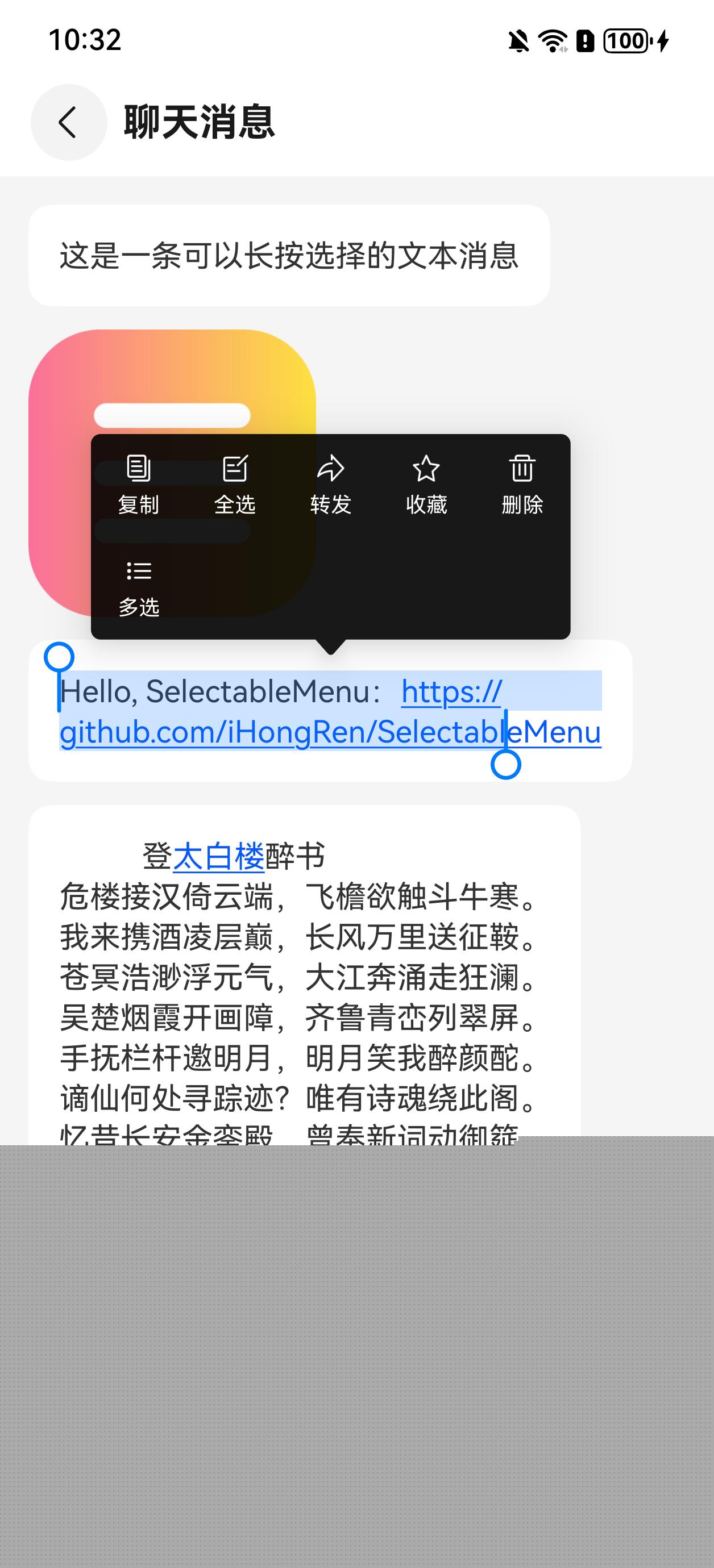 message3.text = 'Hello, SelectableMenu:https://github.com/iHongRen/SelectableMenu'