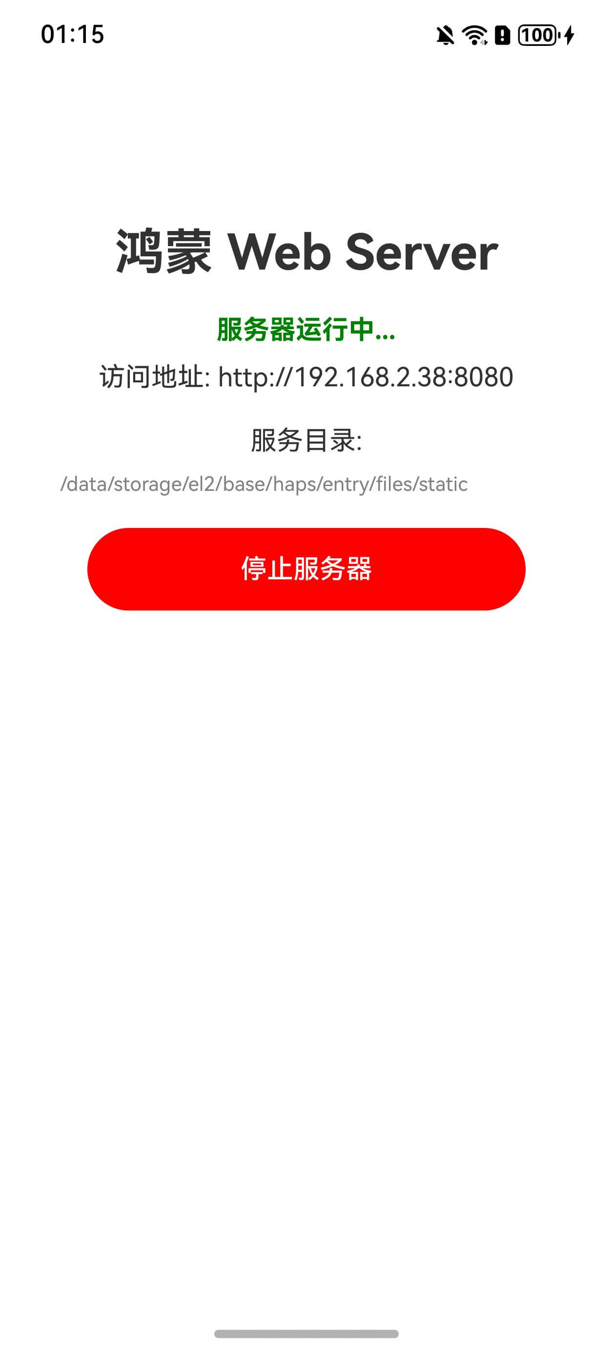 这是一个基于 HarmonyOS 的轻量级Web服务器框架,提供了类似 Express.js 的 API 设计,支持路由、中间件、静态文件服务等功能。