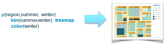 - Allows multiple combinations of visualization elements overlay bars, lines, paths, areas and text freely and in a coordinated space.