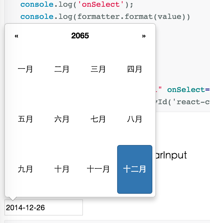 | onChange | Function(date: GregorianCalendar) | function(){} | called when a date is changed inside calendar (next year/next month/keyboard) |